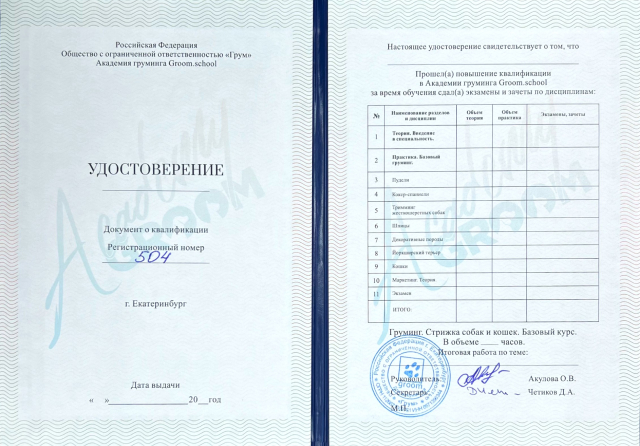 Курс и стажировку ведут 1 преподаватель. Все они — выпускники нашей академии. Сейчас это ТОП-грумеры, победители Российских и Европейских конкурсов и несомненно очень талантливые учителя. Они умеют не только стричь, но и правильно объяснить и донести информацию ученикам.