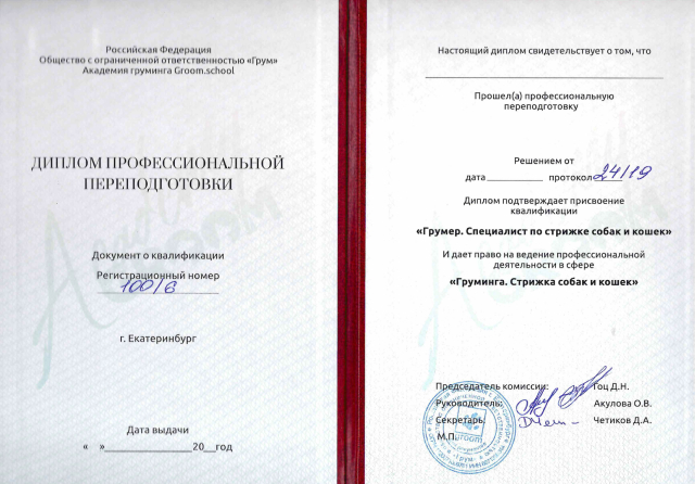 Сегодня Академия Groom одна из немногих имеет Лицензию Министерства Образования в России и выпускает кадры по программе дополнительное профессионально образование, выдавая диплом установленного в РФ образца. Внося данные о каждом выпускнике в Федеральный Реестр Дополнительного Образования (ФРДО).